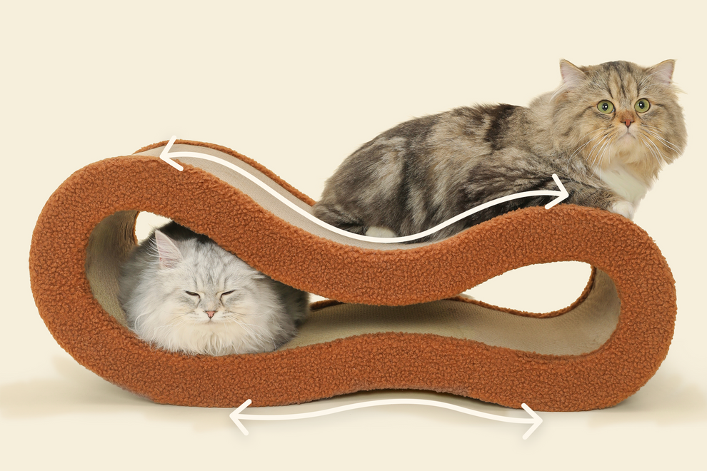 The Cloud Scratcher is a sculptural piece that enhances both your home and your cat’s daily rituals. Its asymmetrical curves support stretching, lounging, and scratching, while the extra‑wide design offers space for cats of every size. Crafted from dense, reversible cardboard, it resists daily wear and delivers lasting value. Wrapped in premium, soft‑touch fabric, this piece blends seamlessly into modern interiors, doubling as a functional work of art. More than just a scratcher, it’s a lounger, a play space, and a stylish safeguard for your furniture. The Cloud Scratcher is where design meets devotion, a restful sanctuary for your cat and a graceful accent for your home.